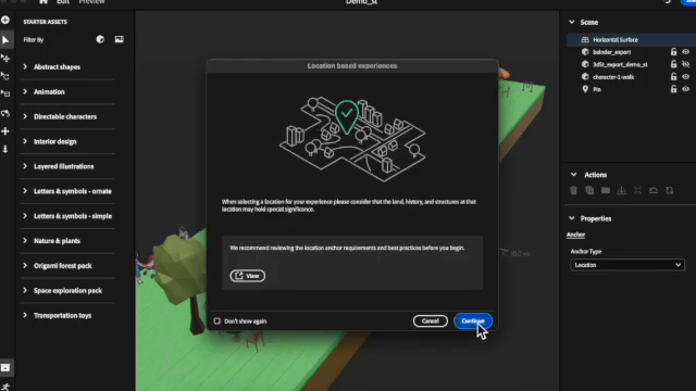 What’s truly remarkable with software like Adobe Aero is the ability to anchor your AR scene to a precise location on Earth. While this grounds your creation to a specific spot, it's not mandatory; you can always opt to apply your scene freely to any street you wish.